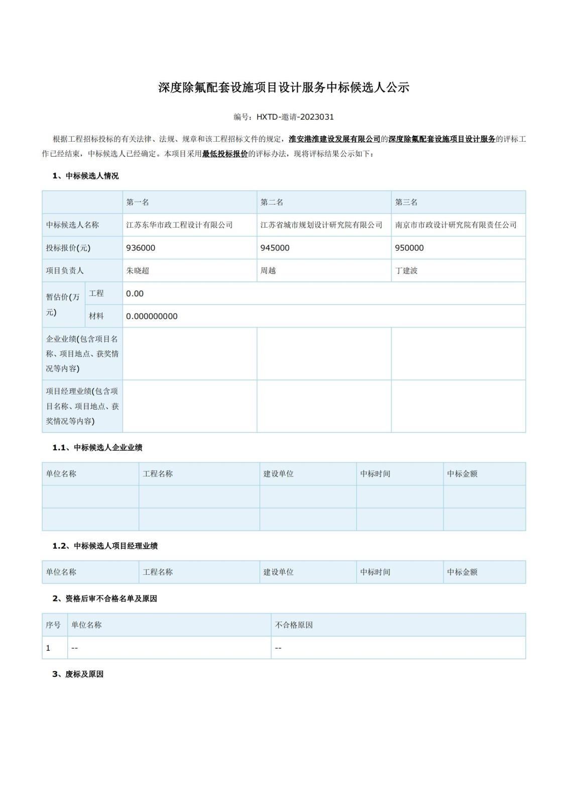 深度除氟配套設(shè)施項(xiàng)目設(shè)計(jì)服務(wù)中標(biāo)候選人公示